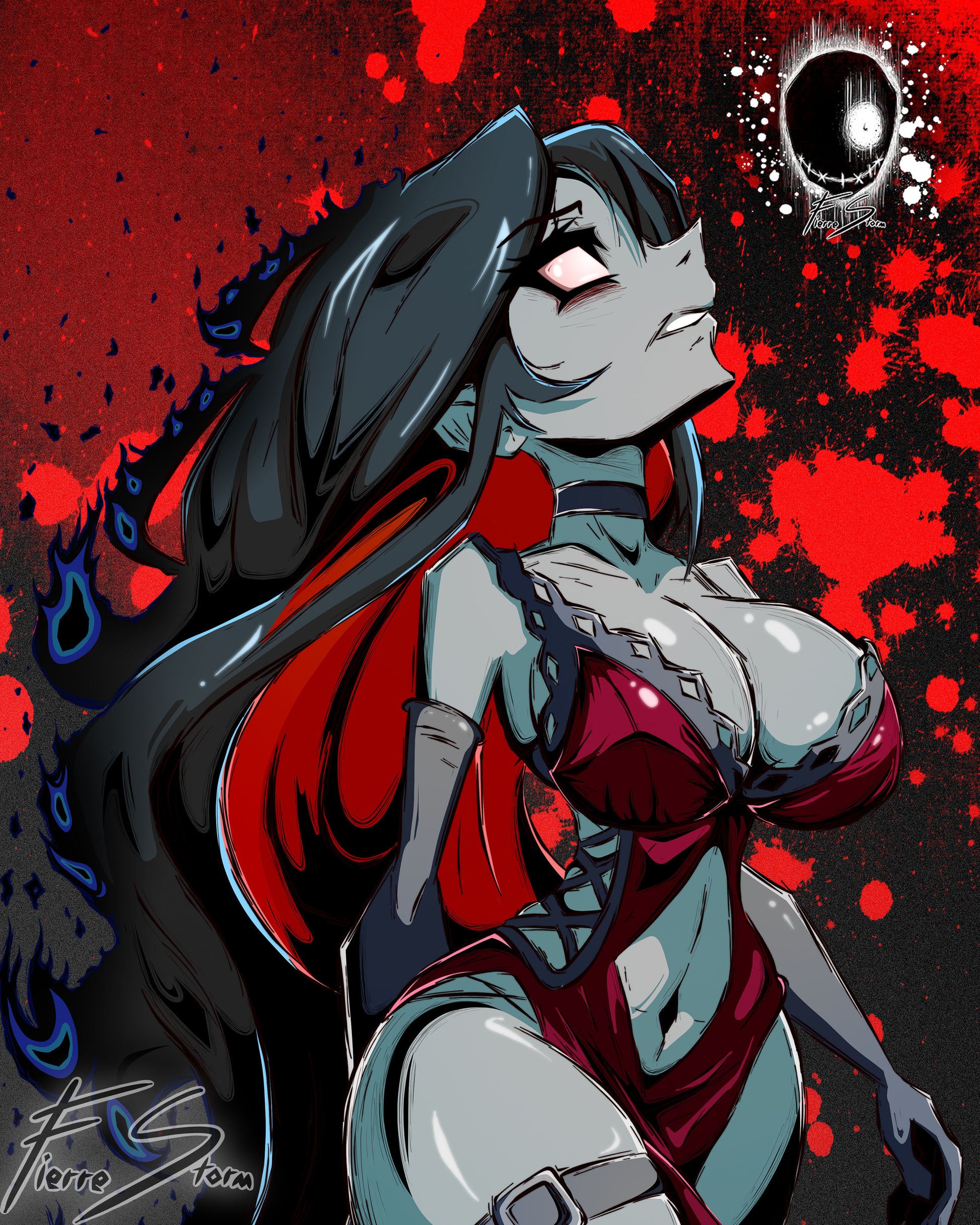 Thicc Demon Waifu Walking From The Flames Supernatural Entity High Quality Glossy Print 11"x 17"